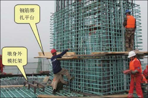 图4 为港珠澳大桥墩身钢筋中试的施工现场