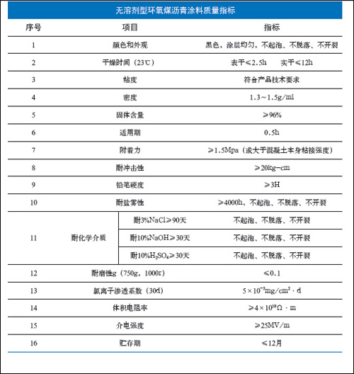 2. 湿喷无溶剂型环氧煤沥青涂料性能
