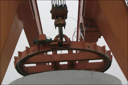 (2) 将行吊卡具与PCCP 管道插口进行对位,下方由专人进行指挥卡具的移动。