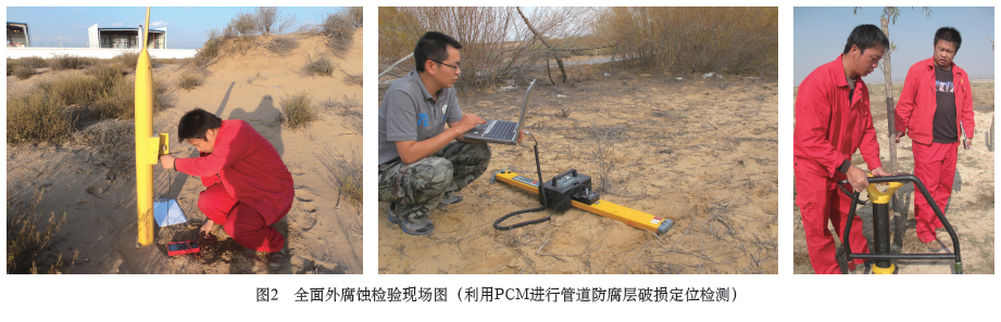 为掌握气田在役管线腐蚀状况,保证气田管线本质安全,苏里格气田研究中心于2011 年对气田100 余公里管线引入了外腐蚀检测技术,针对不同管径、不同类型防腐层、不同服役年限管线开展外腐蚀检测评价。为全面系统做好技术评价,采用PCM(交流电流衰减法)进行全线外防腐层检测,引入CIPS/DCVG(密间隔电位法/ 直流电位梯度电法)组合测量法,首次实现DCVG 对防腐层检测与CIPS 对阴极保护电位测试的同步,同时,对所评价管线沿线敷设环境及所属阴极保护系统均进行了详细测试。经过几年的发展,该项技术已经在气田逐步推广至例行开展,并在此基础上形成了《苏里格气田管线腐蚀检测管理指导意见》,规范气田检测作业。