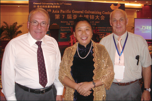 2007年在第七届亚太镀锌大会上,张珠女士与欧洲代表合影