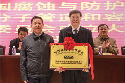 中国腐蚀与防护学会陈光章理事长向PPVC专委会授牌