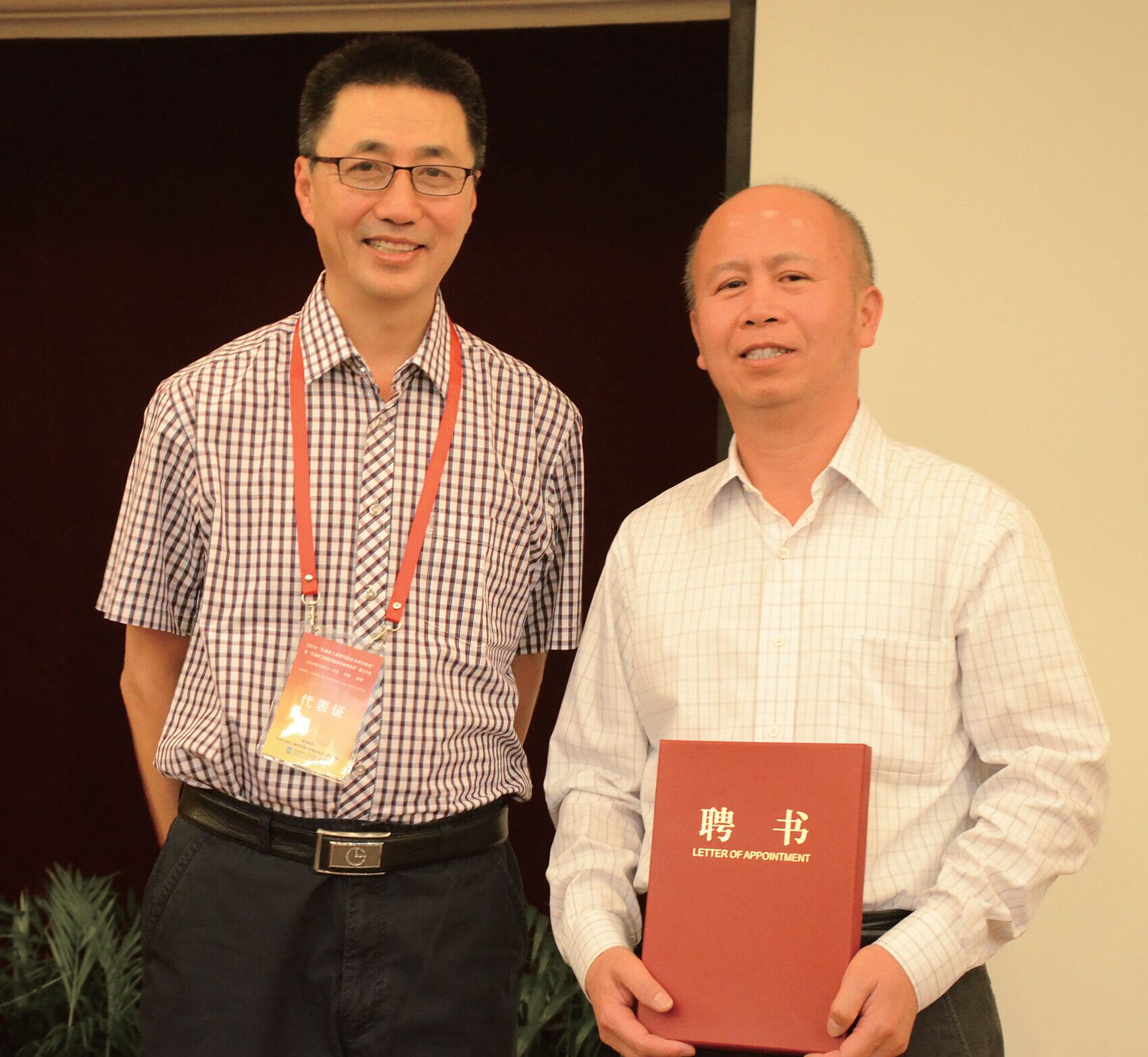 中国腐蚀与防护学会王福会理事长向主任委员刘小辉副总工程师颁发聘书
