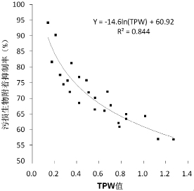 在美国海军研究室的资助下,Brennan 等[21-23]开展了大量鲨鱼皮仿生微结构防污材料的研究,其利用刻蚀翻模的方法研制的Sharklet AFTM微结构材料可以有效地防止藻类、藤壶等污损海生物的附着,使其附着率降低85%左右。由欧盟资助,12 个国家31个研究单位共同参与的AMBIO (advanced nanostructured surfaces for the control of biofouling)项目对微/纳米防污结构进行了研究[24],如基于多壁碳纳米管、海泡石构建纳米微结构、基于氟硅共聚材料通过微相分离制备微结构等,实验表明这些微/纳米结构能够防止藻类和藤壶的附着。Zheng等[25]利用刻蚀翻模制备的仿海星表皮微结构不仅能够大幅减少硅藻的静态附着数量,还能有效减小其附着力。Scardino认为微结构的防污机制与生物附着的“接触点”(attachment points)有关[26-27],污损生物能否形成有效附着取决于被附着面能否提供足够的接触点,微结构和附着生物尺寸的比例关系会影响接触点的多少。接触点理论能够较好的解释体型较大的污损生物(苔藓虫等)的附着,对于运动型污损微生物(石莼孢子等)的附着则不太合适。Long等[23, 28]则构建了ERI (engineered roughness index)模型,并发现ERIⅡ(式1)与石莼孢子附着之间存在较好的对应关系,若再添加一个参数Re (organism's Reynold's number),则ERI 模型也能较好的预测海洋细菌(Cobetia marina)的附着。在接触点理论和ERI模型的基础上,Decker等[29]提出了SEA(surface energetic attachment)模型,能够较好的预测细菌、石莼孢子、硅藻和藤壶幼虫在一些特定微结构上的附着。对于复杂微结构的设计,中船重工七二五所在大量实验数据的基础上构建了TPW模型(式2),该模型能够较好的预测复杂微结构对硅藻(图3)、石莼孢子附着的影响。