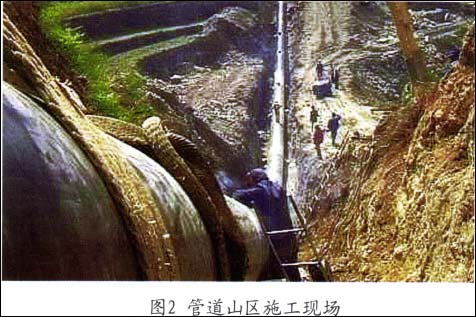 (1)随着管道建设的扩展,地形条件越来越复杂,无人的沙漠地区、沟壑纵横的山区(图2),险峻的峡谷,不但建设投资增大,而且管理的难度和费用也在升高。