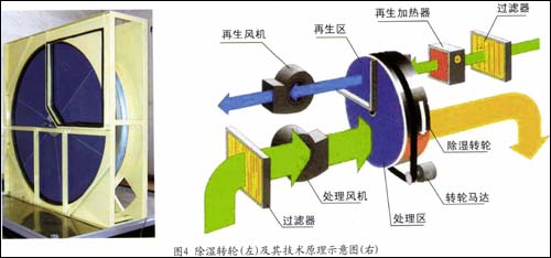 图4 除湿转轮(左)及其技术原理示意图(右)