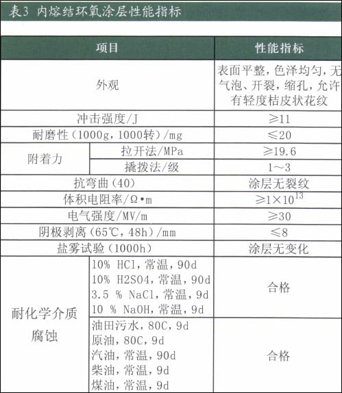 ②腐层的性能指标。熔结环氧涂层的质量指标要达到表3中的要求。