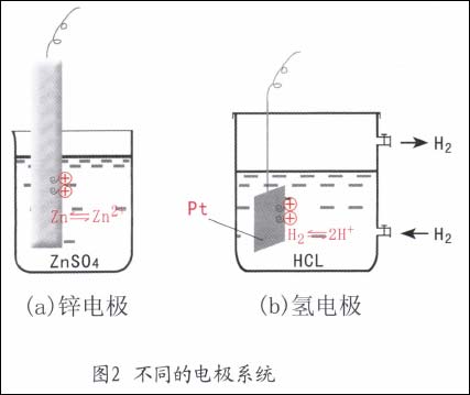 式中右下角括号中标注的是该物质所存在的相,e表示电子。由于金属本身参加了反应,故又称金属电极(图2a)。