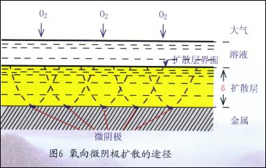 在扩散控制下,即使阴极的总面积不大,但可输送氧的溶液体积通道基本已被占用完了,如图6所示。