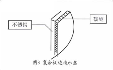 不锈钢复合板是不锈钢与碳钢经爆炸挤压而成的复合材料。一般不锈钢的厚度为3~6mm,碳钢的厚度为12~20mm,如图3所示。