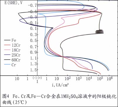 例如,铬是不锈钢获得耐蚀性的最基本元素。在氧化性介质中,铬能使钢表面很快生成Cr203保护膜。这种膜一旦被破坏,会很快修复。在氧化性条仵下,随钢中含铬量的升高,其耐蚀性愈好。如图4所示。