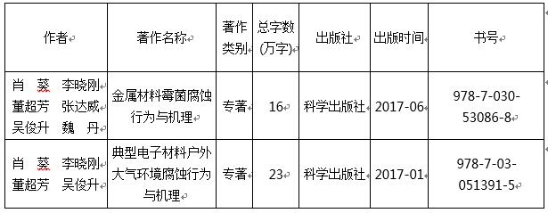 3. Yan, LD (Yan, Lidan)[1,2]; Xiao, K (Xiao, Kui)[1,2]; Yi, P (Yi, Pan)[1,2]; Dong, CF (Dong, Chaofang)[1,2]; Wu, JS (Wu, Junsheng)[1,2]; Bai, ZH (Bai, Ziheng)[1,2]; Mao, CL (Mao, Chengliang)[1,2]; Jiang, L (Jiang, Li)[1,2]; Li, XG (Li, Xiaogang)[1,2,3].The corrosion behavior of PCB-ImAg in industry polluted marine atmosphere environment[J]. MATERIALS & DESIGN,2017,115: 404-414(IF:4.364)