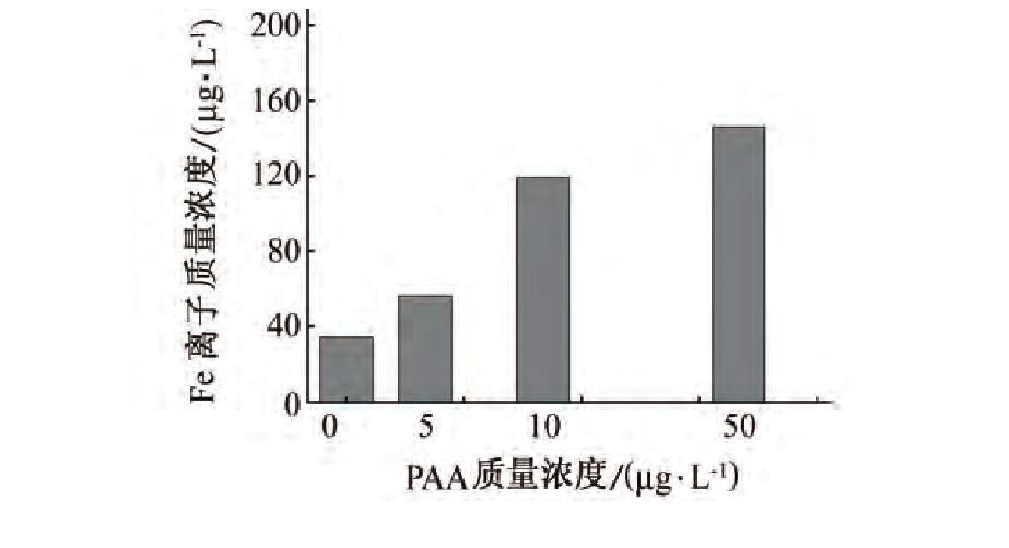 图2 试验溶液中铁离子含量随PAA含量的变化关系