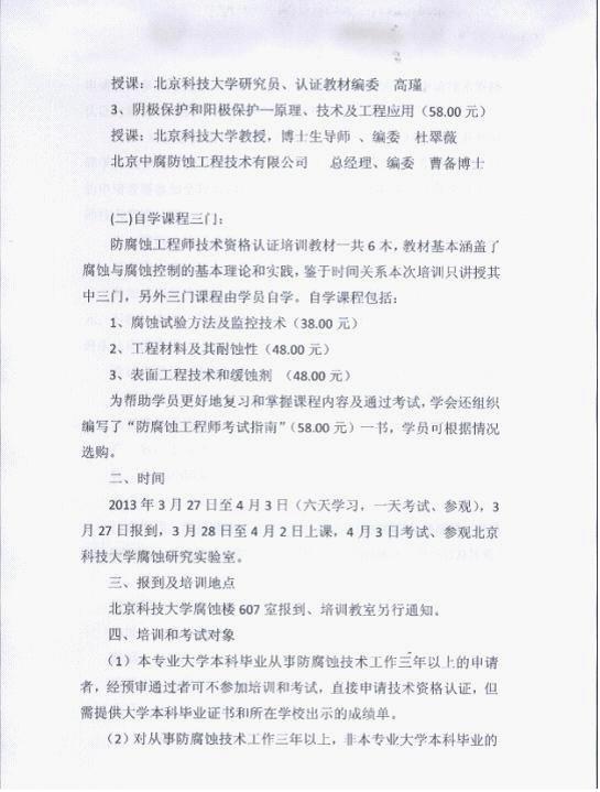 关于举办第十七期防腐蚀工程师技术资格认证培训和考试的通知