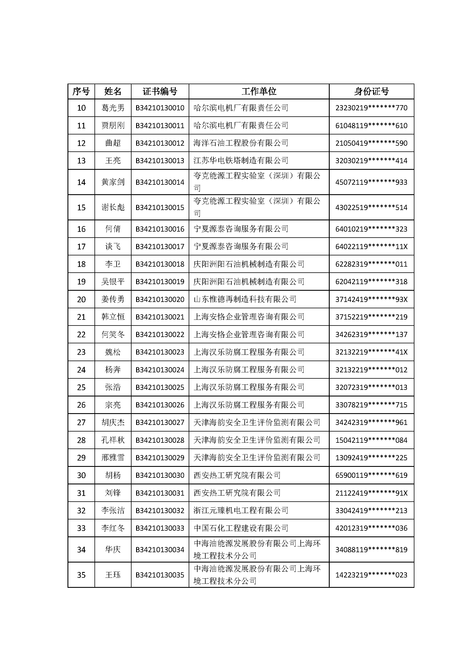 2021 年腐蚀与防护工程师(系列)专业技术资格认证结果公告