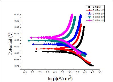 图3a 不同正丙醇胺浓度下钢筋的极化曲线