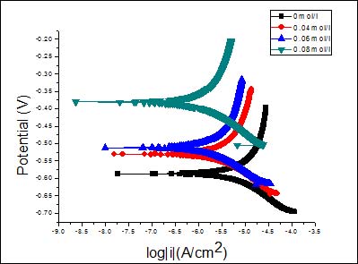 | Icorr(μA) | 14.80 | 5.243 | 3.780 | 2.194 | 1.046 |