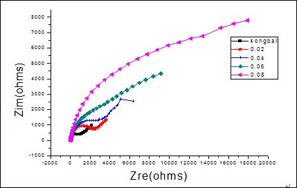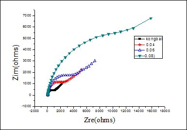 图4b 不同二乙醇胺浓度下钢筋的阻抗谱图