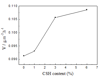 图9不同添加量的(1%、3%、6%)水化硅酸钙处理前后pH=9.7孔隙液中钢筋试样的腐蚀速率