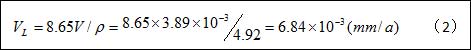 电弧喷锌铝涂层在青岛大气环境下的深度腐蚀速率VL为:
