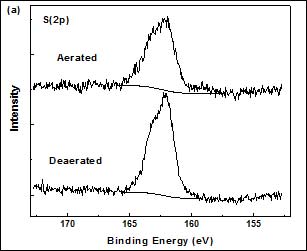 Figure 1. XPS spectra of DT-covered copper prepared in the aerated and deaerated aqueous micellar solution