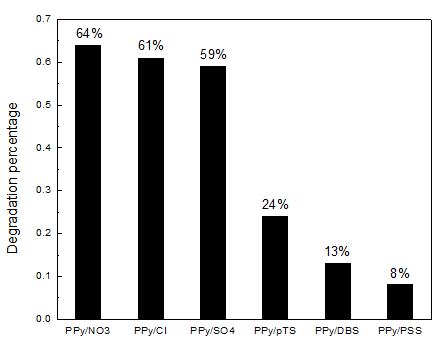 图2 掺杂不同尺寸对阴离子聚吡咯膜的降解度