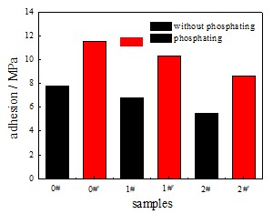 图4. 磷化预处理前后试样附着力变化