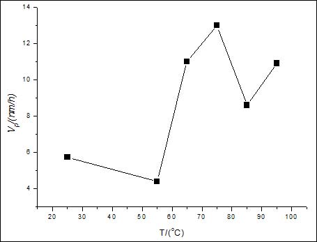 采用失重腐蚀实验,研究1Cr18Ni9Ti在不同温度草酸体系对1Cr18Ni9Ti腐蚀速度。曲线如图6所示。