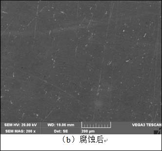 采用扫描电子显微镜对80℃下0.1%的柠檬酸溶液浸泡前后(48h)的表面形貌进行观察如图7所示。