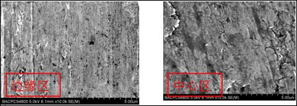 图3 八道次加工样品边缘和中心区电子显微镜形貌照片