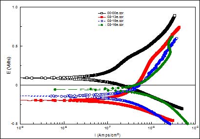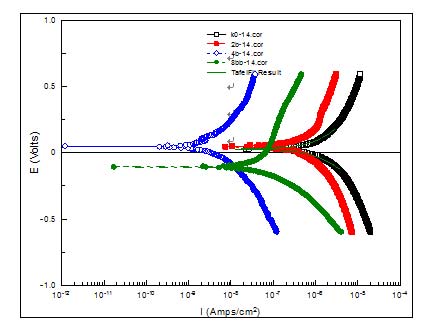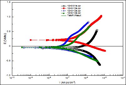 图5 浓度0.1Mol/L LiOH水溶液中Zr-4的极化曲线