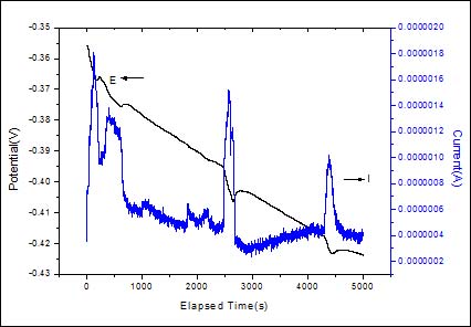 图5. N80钢处于稳态点蚀后期的电化学噪声图谱