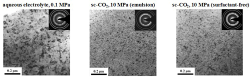 Sone and colleagues have demonstrated the electrodeposition of nickel from an emulsion of an aqueous nickel plating solution in sc-CO2 bath.