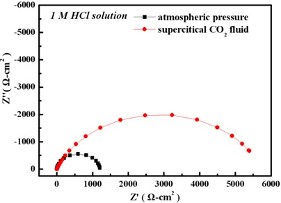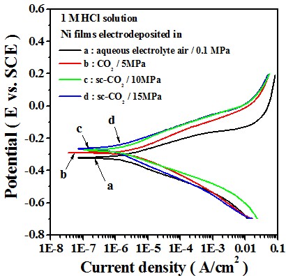 In 1 M HCl solution, the Ni film deposited in sc-CO2 bath had a lower anodic current density and a higher polarization resistance, which is mainly attributed to the crystallographical orientation.