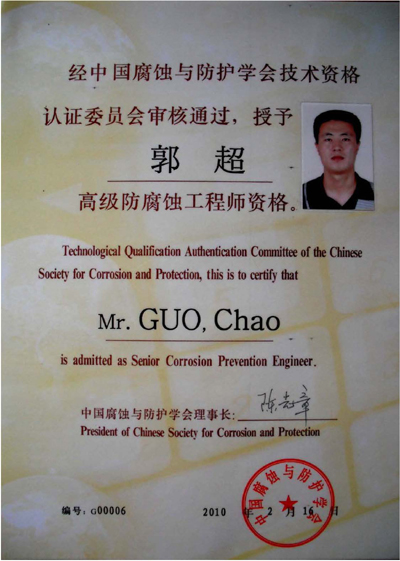 目前为中文核心期刊《油气储运》的外审专家,2010年获中国腐蚀与防护学会高级防腐工程师证书,2011年通过中国石油天然气集团公司高级工程师评审,2012年获得NACE阴极保护专家认证。至今在国内外核心刊物发表专业技术论文20多篇,其中外文文章6篇,中文17篇,1篇获《电镀与涂饰》2006年度优秀论文奖,先后6次获中石油工程建设公司年度优秀论文奖(局级)。多次获中石油工程建设公司“优秀员工”和“优秀党员”称号。