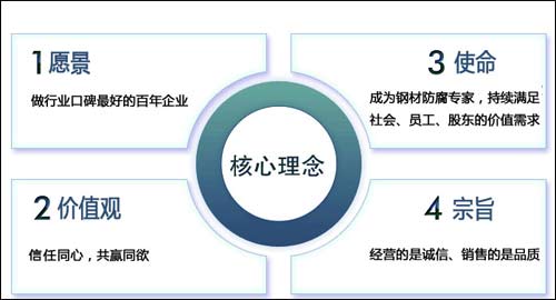 企业使命:成为钢材防腐专家,持续满足社会、员工、股东的价值需求。