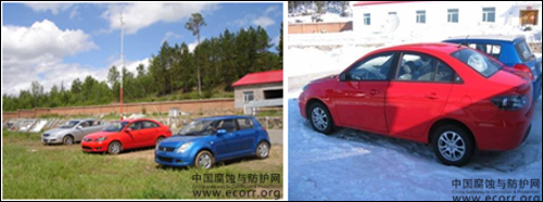 为提升自主品牌汽车产品的设计水平,提高自主品牌汽车产品在严酷气候环境条件下的安全性、可靠性和使用寿命,中国长安汽车股份有限公司委托中国兵器工业五九研究所环境试验中心专题开展了“长安汽车整车大气暴露试验”研究。中心所属江津试验站、万宁试验站、拉萨试验站、敦煌试验站、漠河试验站承担此项工作中的外场试验工作,本项目针对长安公司的A101、B201、B301、CV8和swift共五款车型计10台整车,以及取自整车的1500余件金属和非金属材料、零部件,较为系统地开展了自然环境试验和自然环境加速试验。