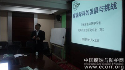 随后,王福会研究员主持发言,严川伟研究员作了《腐蚀学科的发展与挑战》的报告,与会专家和代表就腐蚀防护学科及行业的状态、发展空间以及发展策略等进行了广泛讨论。