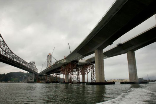 图为跨海大桥,2013年3月27日美国加州交通部乘船视察