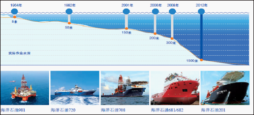 从技术和装备角度,我国海洋装备水平与国外相比有近10年的差距:目前国外深水钻探的最大水深已达3095米,中国为1480米,新近投入服役的“海洋石油981”第一钻可拓展到约3000米;国外已开发油气田的最大水深为2743米,中国为300米,而自主开发能力仅限于200米水深以内,南海荔湾为1500米,2013年投产,但关键设备全部进口。