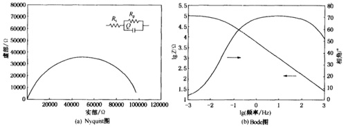 它是可以用来描述金属/电解液界面的最简单的等效电路。对于该等效电路的EIS模拟数据(=100Ω,)的阻抗图谱如图1-2所示。