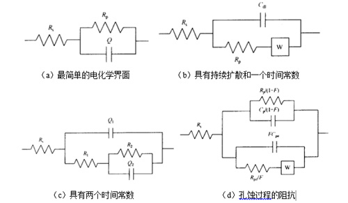 图1-1 解释腐蚀系统EIS结果而提出的等效电路模型