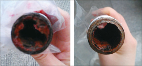a)管龄8年DN20镀锌钢管 b)管龄5年DN20镀锌钢管