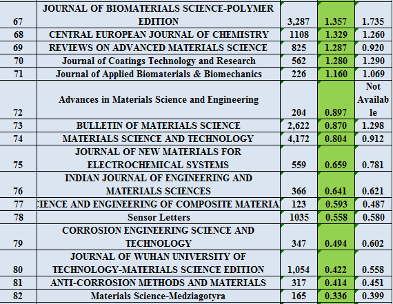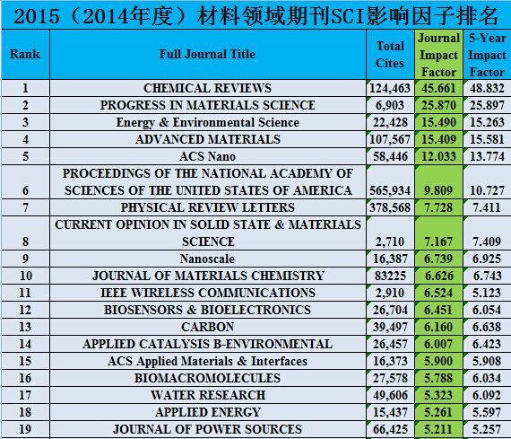 一张表告诉你2015材料领域期刊SCI影响因子排名