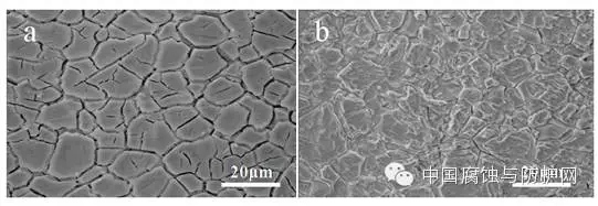 第三,当材料表面覆盖着较厚的腐蚀产物时,进行观察腐蚀形貌时一定要注意将取出腐蚀产物前后的形貌进行综合对比,才能获得准确的结论。两种材料在未去除腐蚀产物之前形貌相同,去除腐蚀产物后腐蚀形态可能会大相径庭。例如,316L不锈钢在80℃Na2SO4和NaCl混合溶液中腐蚀4小时后的腐蚀形貌同ZE41镁合金在NaCl溶液中腐蚀12小时的形貌基本相同,腐蚀产物都呈现龟裂状。但是,去除腐蚀产物后发现,二者的腐蚀形态截然不同:316L不锈钢80℃Na2SO4和NaCl混合溶液中发生的是均匀腐蚀图5,而ZE41发生的则是点蚀,图6。