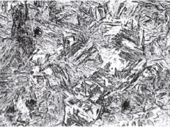 "20钢,630×,3%硝酸酒精溶液,950℃加热保温后水淬,低碳马氏体,又..."
