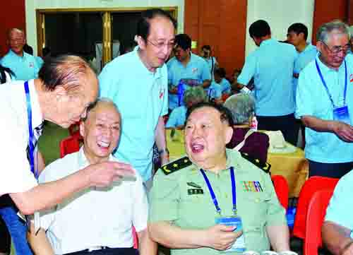 徐滨士(右一)在母校哈尔滨工业大学 冯健/图