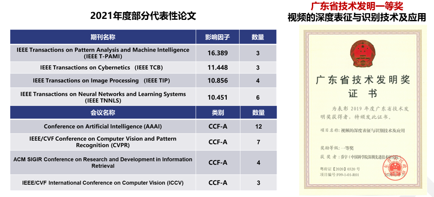 2021年度发表期刊论文212篇,其中IEEE 期刊论文63篇 ;IF>10分达29篇;会议论文128篇,其中CCF-A/B类论文46篇,1篇荣获AAAI 2021杰出论文奖