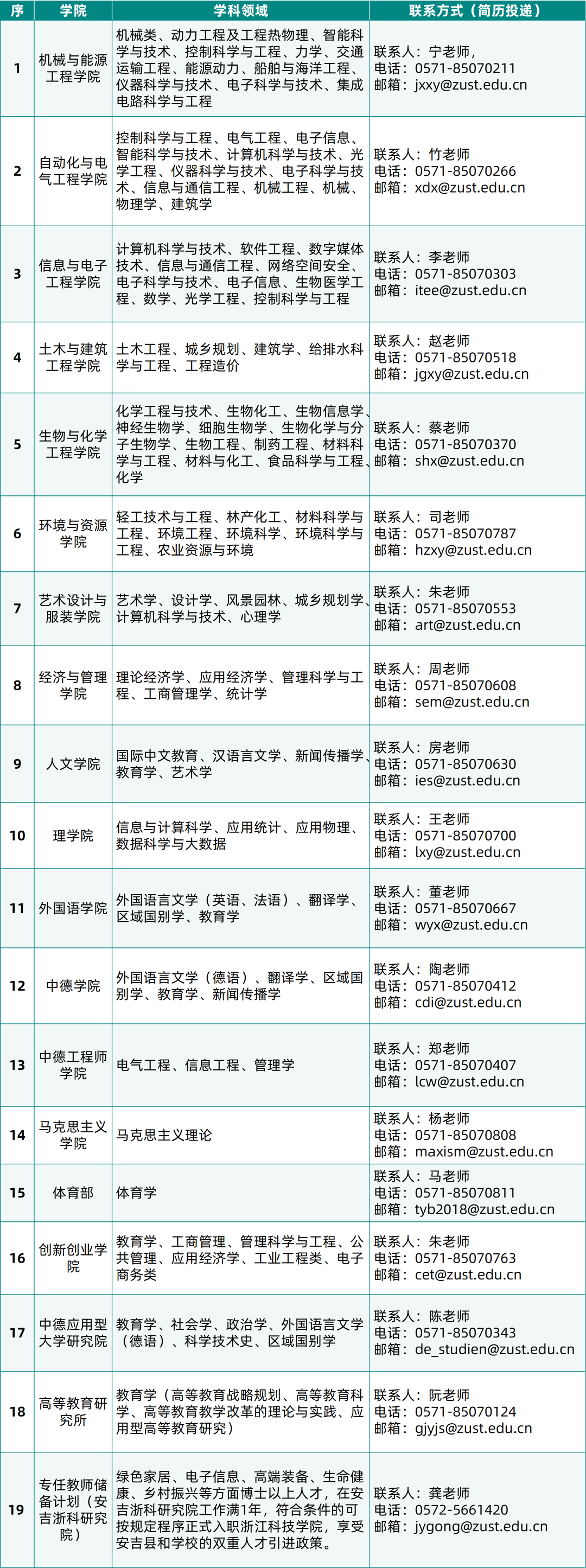 联系地址:浙江省杭州市西湖区留和路318号浙江科技学院人事处(行政楼309室) 邮编:310023