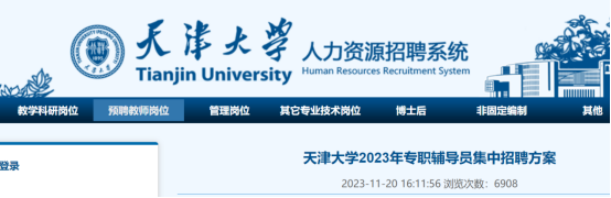 《天津大学2023年专职辅导员集中招聘方案》中,专职辅导员基础岗位共招聘7人,人才计划岗位、银发计划岗位若干人,每人仅限投1个岗位。